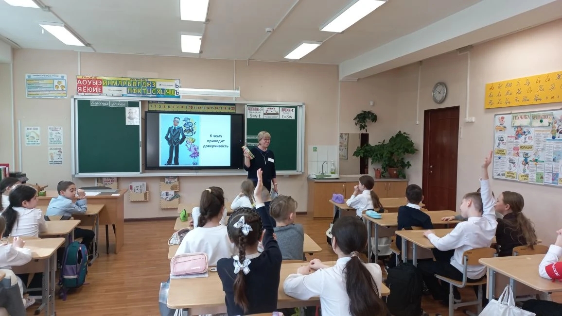 Сотрудники библиотеки провели еще одну беседу по рассказу писателя «Деловой мальчик» в 4 классе Прогимназии. Дети заранее подготовились к встрече и прочли произведение. Всех тронул простодушный герой. Ребята высказывали свое мнение о поступках Николаши, который в день своего рождения получил в подарок велосипед, но из-за излишней доверчивости и неумения говорить «нет» постепенно обменял его на ненужные мелочи. Ученики пришли к выводу: «Нельзя терять веру в людей, но нужно уметь разумно оценивать обстановку».