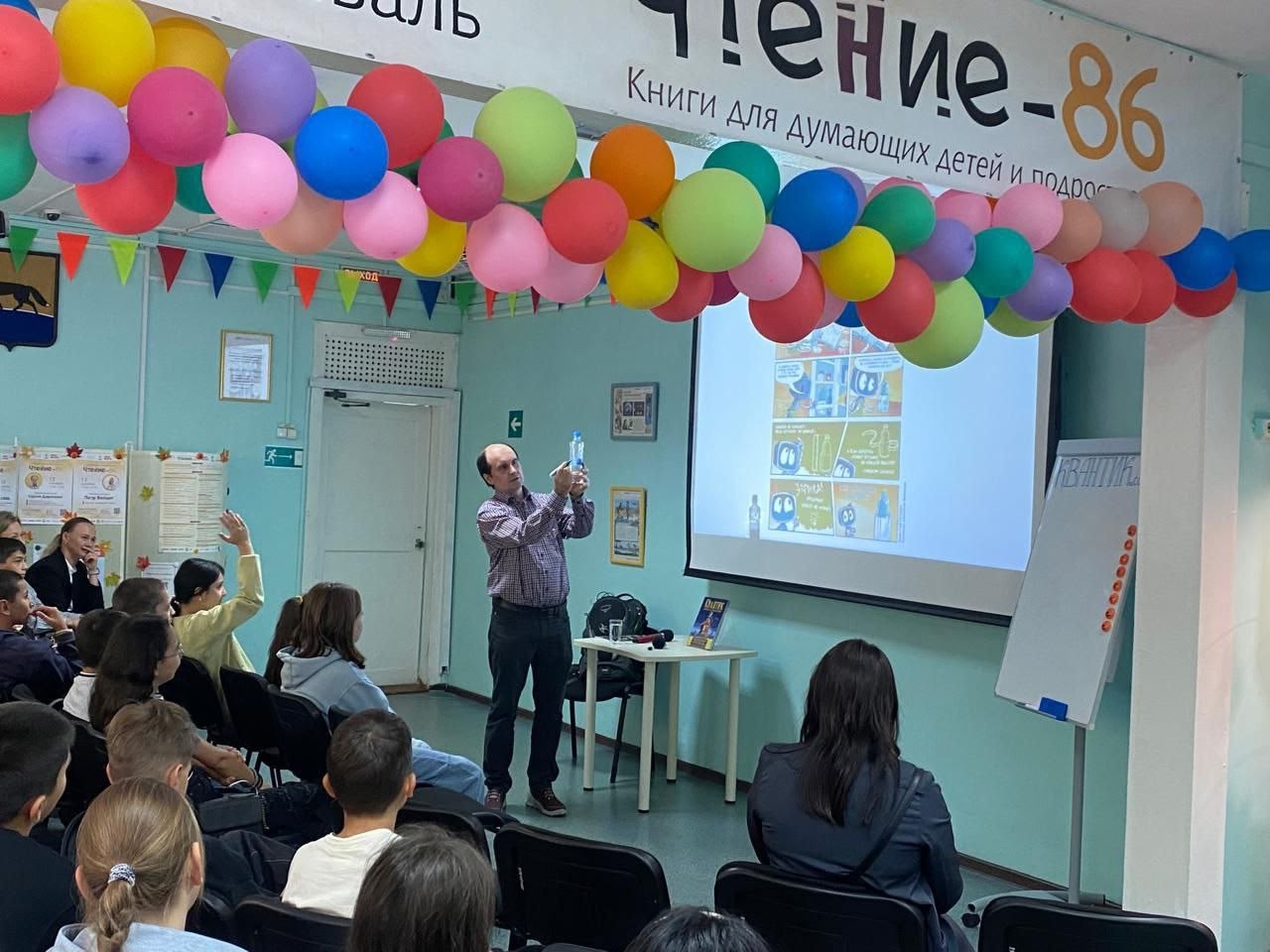 В Центральной детской библиотеке прошел мастер-класс «Энергия слова» от Анжелики Бивол, на котором сургутская писательница, член Союза детских и юношеских писателей учила ребят писать рассказы. Здесь же состоялась интерактивная интеллектуальная игра «Математика для блогеров» под руководством учителя математики, победителя муниципального этапа конкурса профессионального мастерства «Учитель года-2024» Марии Червинской; и беседа с начальником производственно-технологической службы Сургутской ГРЭС-2 филиала ПАО «Юнипро» Александром Синельниковым, который рассказал юным участникам встречи, откуда в их домах тепло и свет.