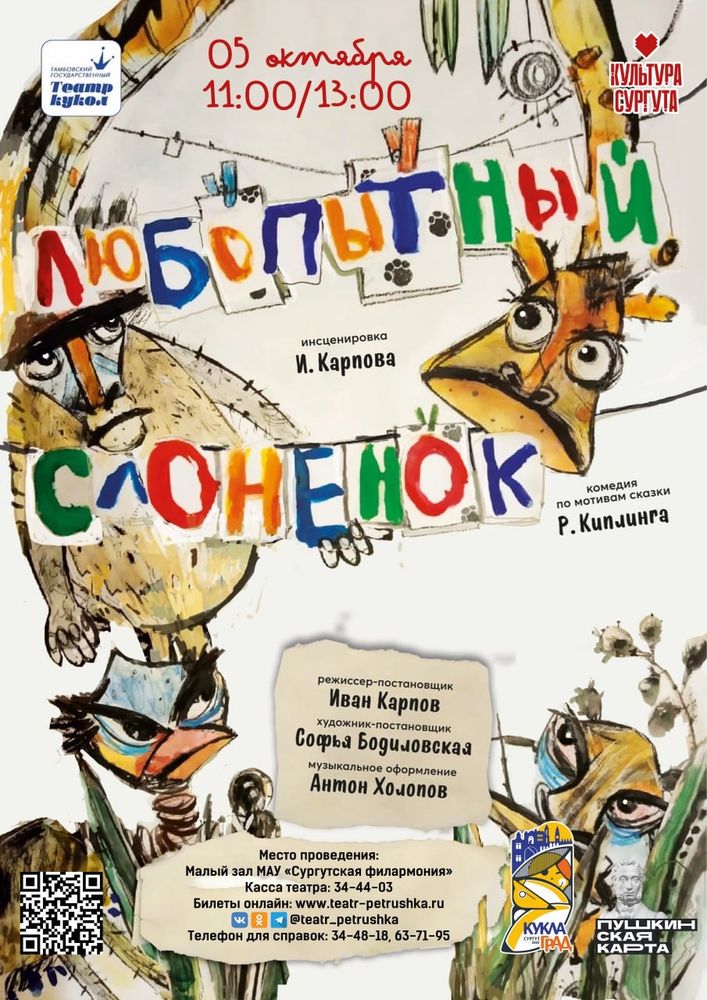 Приглашаем наших юных читателей и их родителей на спектакль «Любопытный Слонёнок», который состоится 5 октября в Малом зале МАУ «Сургутской филармонии».