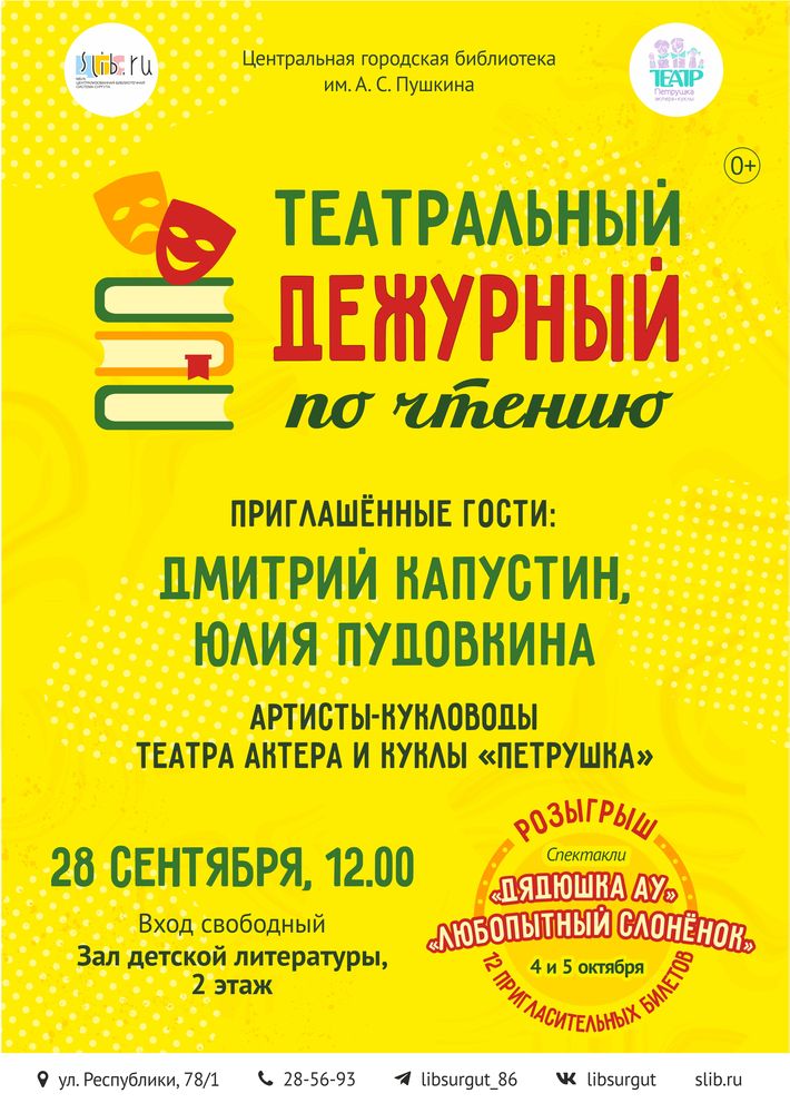 Театральный «Дежурный по чтению» приглашает на встречу с актерами!