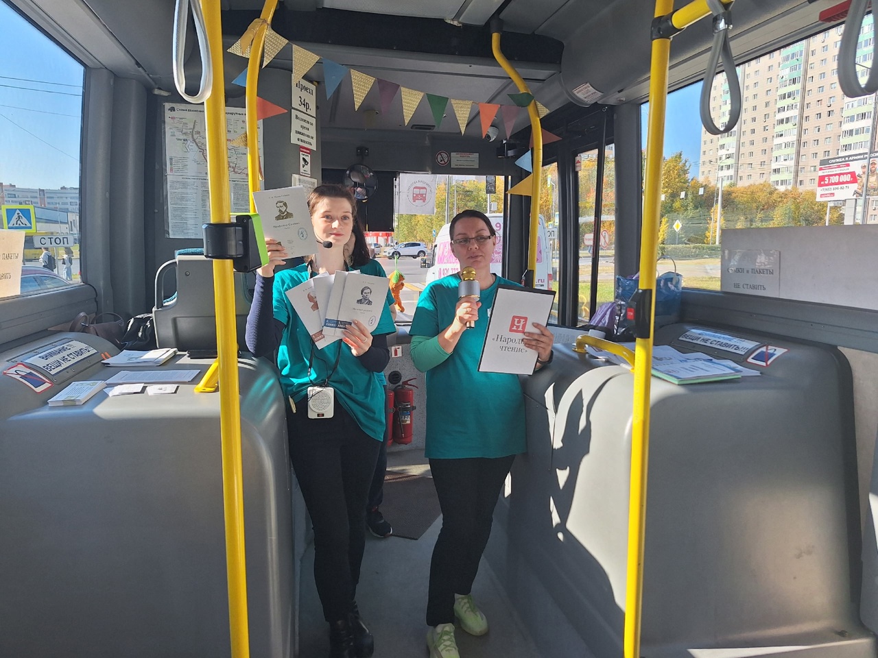 19 сентября в рамках проекта «Народное чтение» по улицам Сургута проехал «читающий» автобус. Пассажиры маршрута № 26 в компании библиотекарей погрузились в творчество русского писателя Дмитрия Наркисовича Мамина-Сибиряка.