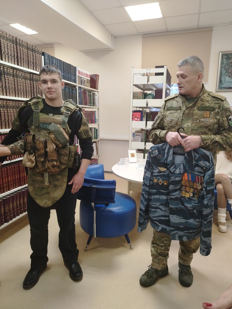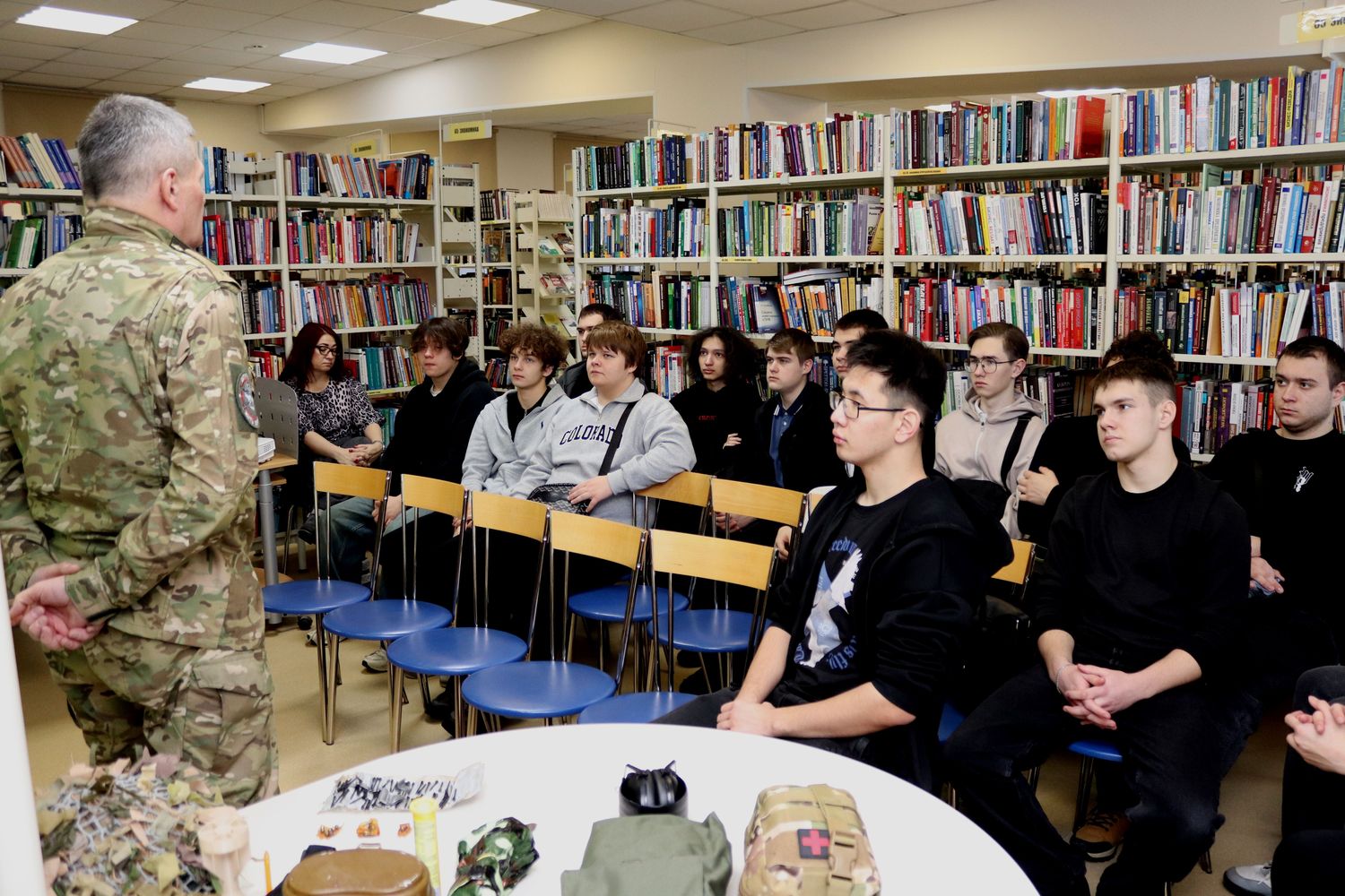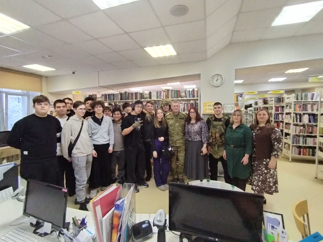 Студенты 2 курса Института нефти и технологий приняли активное участие в заседании на тему «Будущие герои: твоя сила нужна России!». Выступающим гостем стал Андрей Викторович Медвецкий – ветеран боевых действий, офицер запаса МВД, участник специальной военной операции, доброволец Казачьей разведывательной диверсионно-штурмовой бригады «Сибирь». Именно он является идейным вдохновителем создания такой библиотечной площадки для молодежи, – места, где можно получить теоретические знания и практические навыки в направлении начальной военной подготовки перед службой в Вооруженных силах РФ.