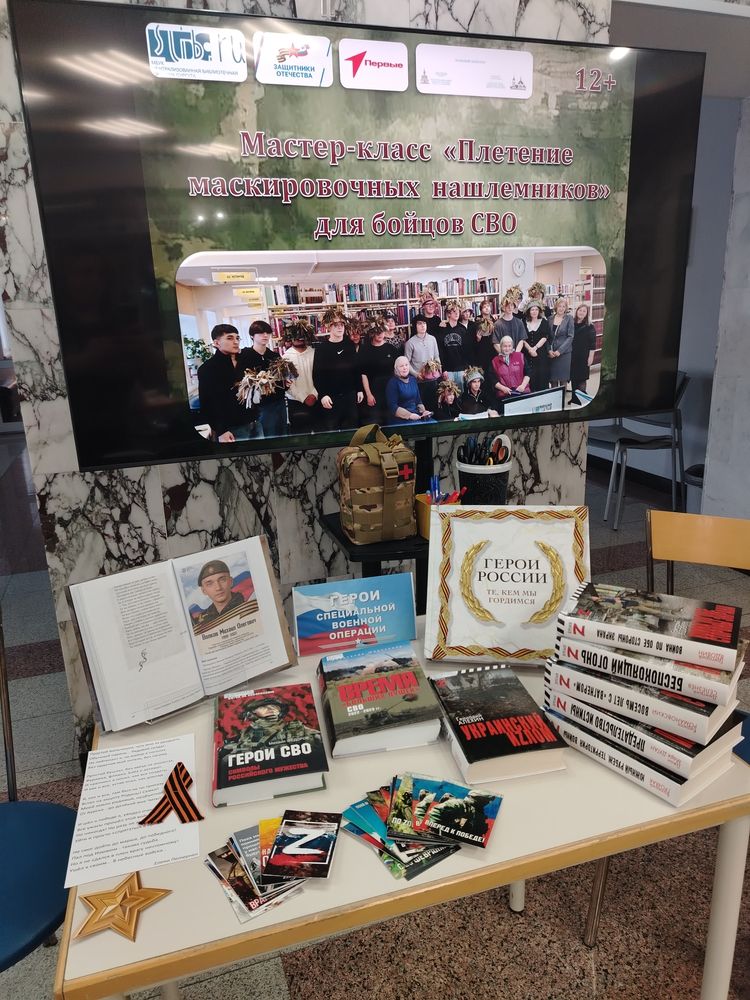 Плетение маскировочных нашлемников в Центральной городской библиотеке им. А.С. Пушкина