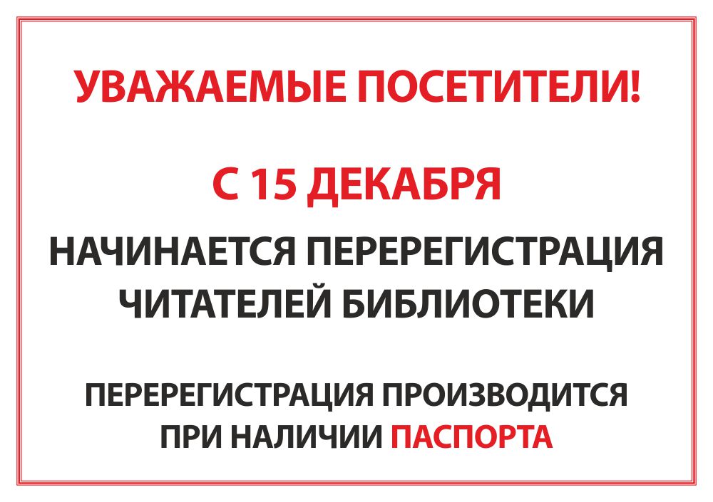 С 15 декабря начинается перерегистрация читателей библиотеки