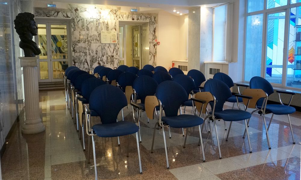 Удобна для проведения семинаров, тренингов, презентаций, а также для проведения обедов и кофе-пауз во время мероприятий, проводимых в конференц-зале. Для презентаций есть возможность воспользоваться телевизионной панелью, флип-чартом.